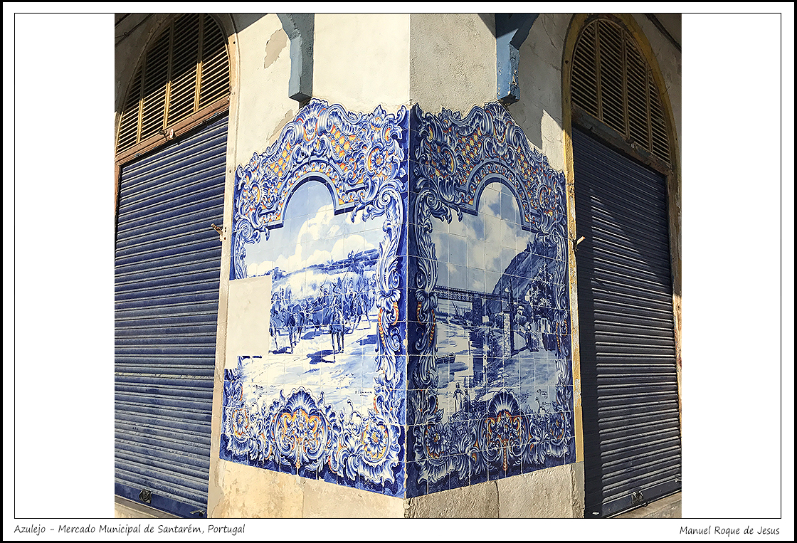 Azulejo, Santarem, Portugal, Markthalle, Wandschmuck, Blaue Fliesen, Tradition