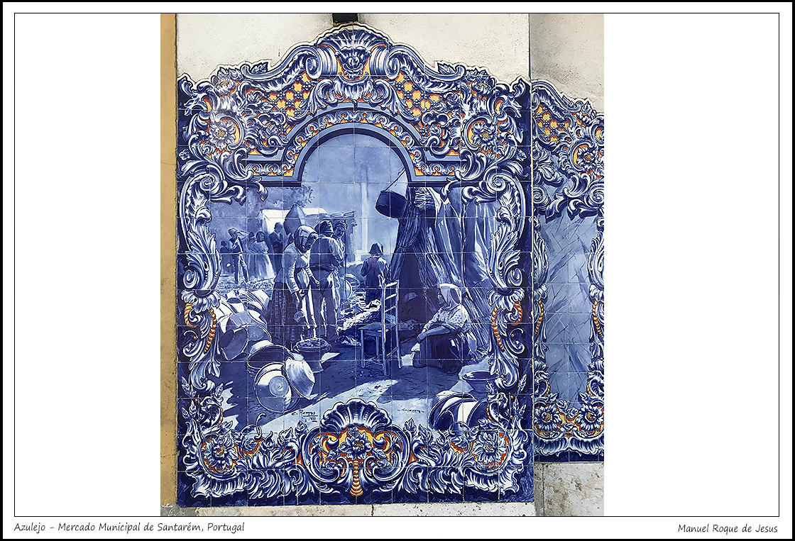 Azulejo, Santarem, Portugal, Markthalle, Wandschmuck, Blaue Fliesen, Tradition