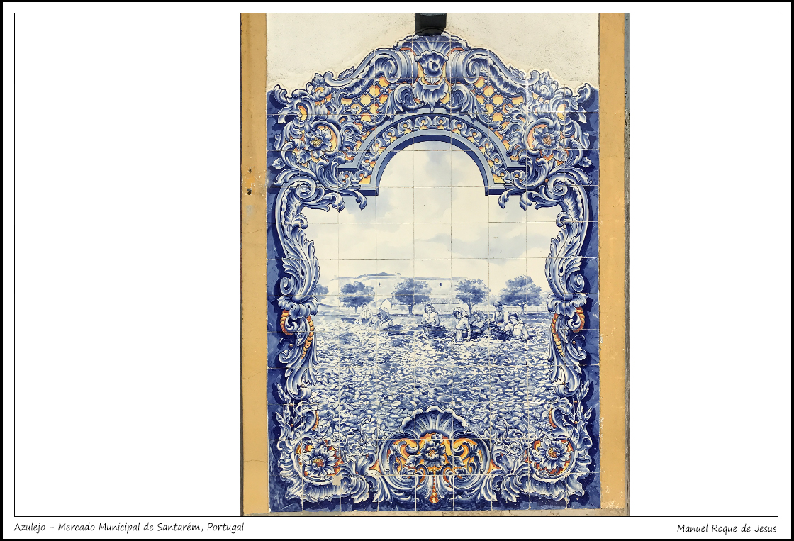 Azulejo, Santarem, Portugal, Markthalle, Wandschmuck, Blaue Fliesen, Tradition
